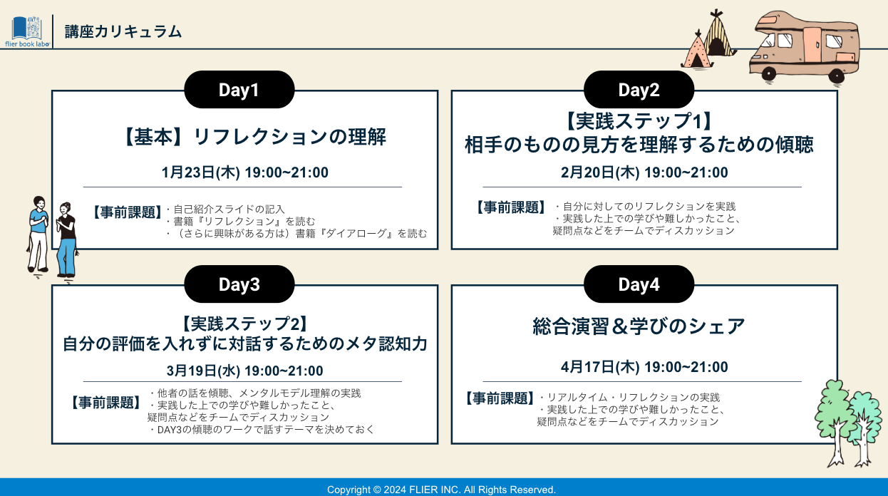 ゲストスピーカーは、オンライン講座「flier book camp」で講師を務めてくださる熊平美香さんです。熊平美香さんが1月より担当する講座は、題して「相手が自ら気づき学ぶための「リフレクションを支援する技術」 」。