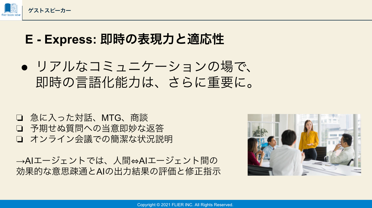 PENの2つ目は「E - Express:即時の表現力と適応性」です。